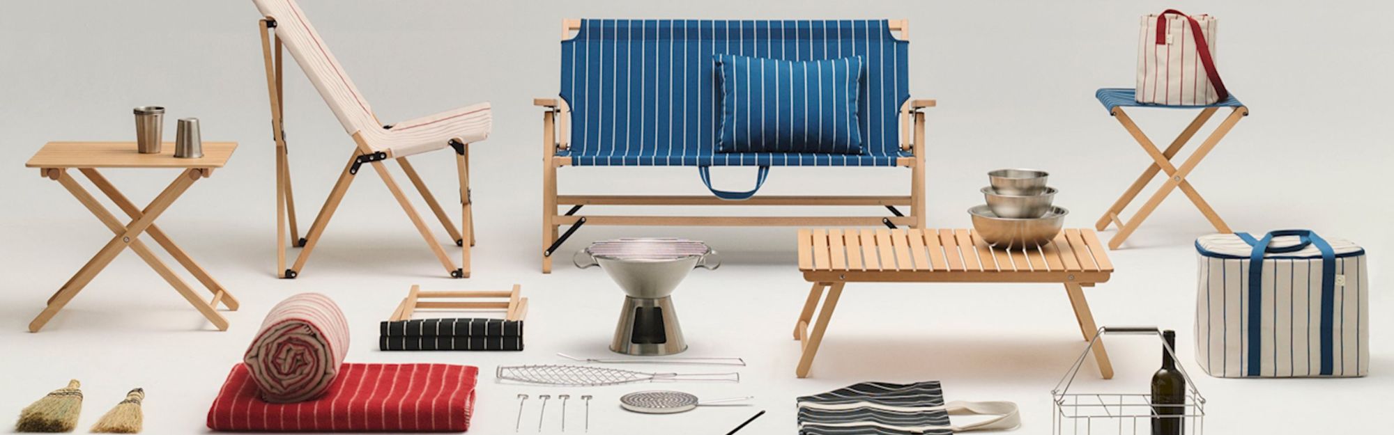 El diseñador británico Jasper Morrison colaboró con la marca danesa Hay para desarrollar una colección completa de objetos para actividades al aire libre. La serie incluye sillas plegables, mesas, parrillas y accesorios producidos en madera de haya, acero inoxidable y textiles rayados. El proyecto refleja el enfoque “super normal” que caracteriza a Morrison: objetos discretos, funcionales y pensados para durar.